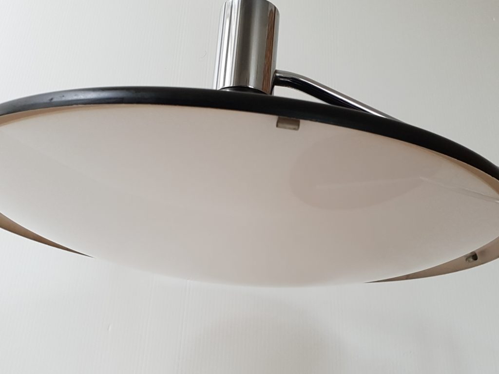 Excellent état général, faibles traces d'usage. Entièrement d'origine, fonctionne parfaitement. Hauteur 47 cm. Longueur 52 cm. Diamètre/ largeur 41 cm. Une lampe magnifique qui possède un pied rotatif très pratique. LA lampe à posséder sur son bureau.