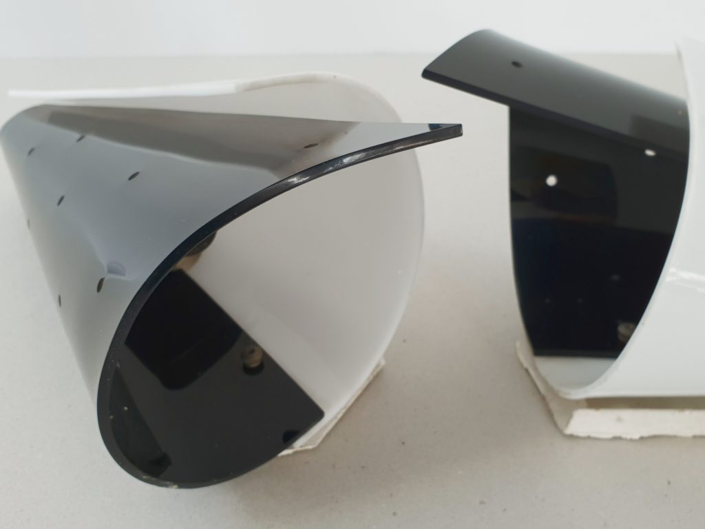 +33(0)6 60 56 60 70Bon état général, traces d'usage à l'intérieur et sur le support mural (peinture blanche). Hauteur 32 cm. Longueur 15 cm. Profondeur 13 cm. Fonctionne. Magnifiques appliques